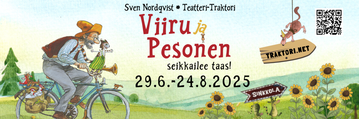"Viiru ja Pesonen seikkailee taas”. Tämä koko perheelle suunnattu kantaesitys perustuu rakastettuihin Sven Nordqvistin lastenkirjoihin ja tarjoaa vaaraa, vauhtia ja leppoisia tilanteita kaikenikäisille katsojille. Sinkkolan kesänäyttämö, Pesolantie 2 Joensuu.